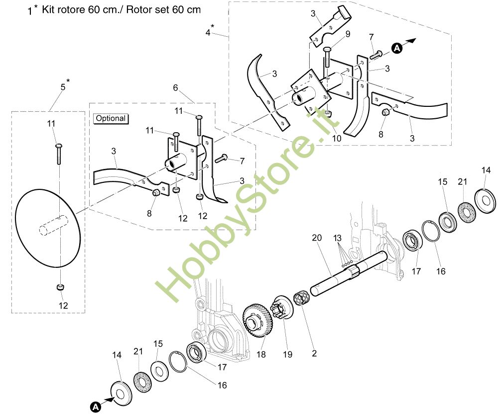 Ricambio Rotore (completo) sx SX; LEFT Fresa MH 200 Motozappa della marca Oleo-Mac Richiede pezzi:1