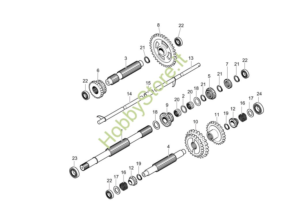 Ricambio Albero Ingranaggi (Cambio) MH 250 R (EN709) Motozappa della marca Oleo-Mac Richiede pezzi:1