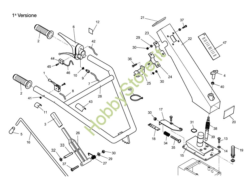 Ricambio Maniglia Stegola e comandi (1° Versione) 115 (Fino/Until 2009) Motozappa della marca Nibbi Richiede pezzi:1