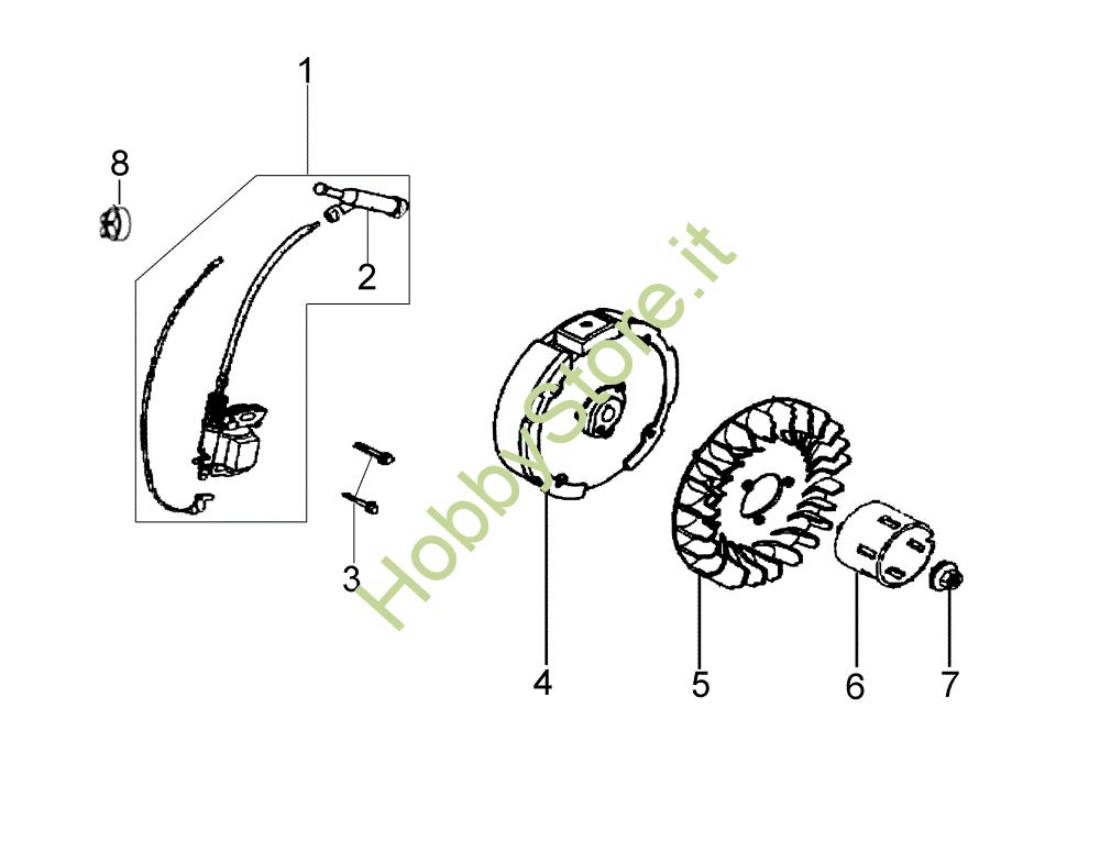 Ricambio Volano Volano e bobina 105 (K800 HC) Motozappa della marca Nibbi Richiede pezzi:1