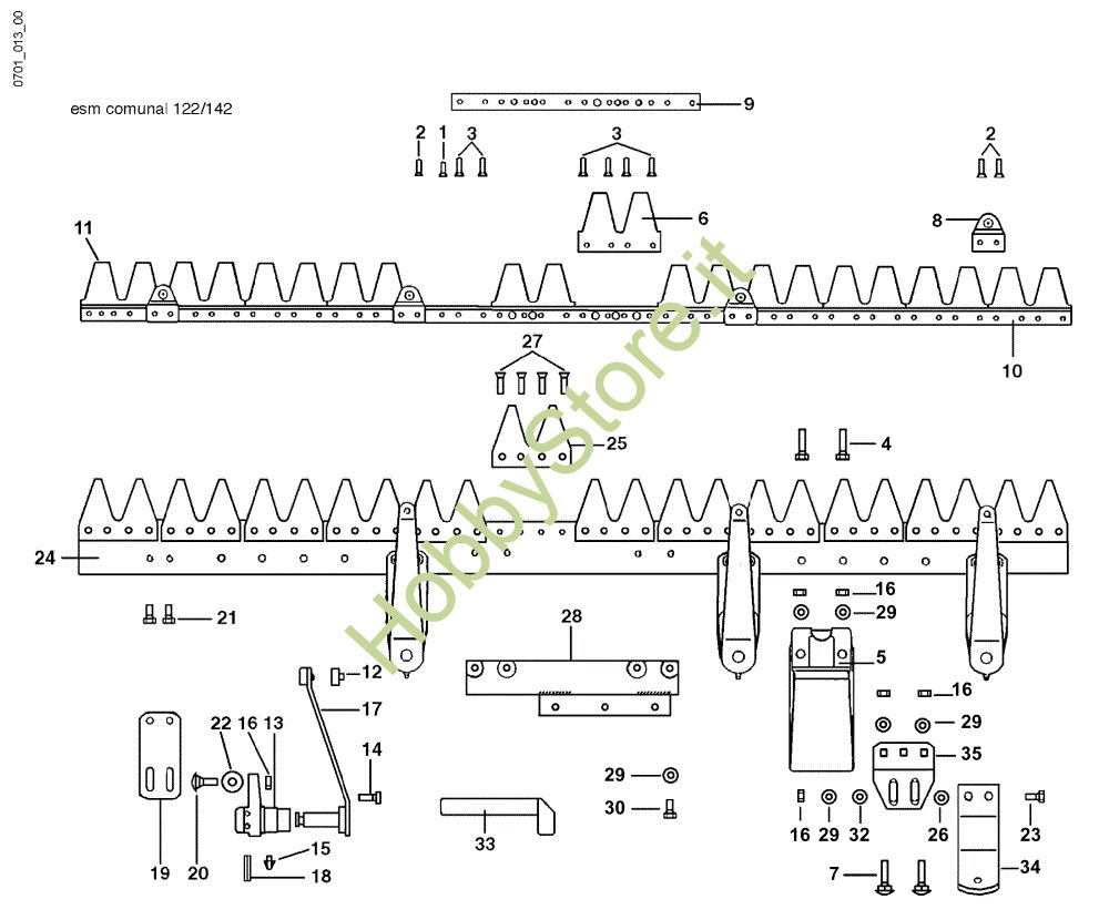Ricambio Lama di taglio 142 cm Movimento in bagno d'olio 69229025 FC 30 M Falciatrice della marca Nibbi Richiede pezzi:1