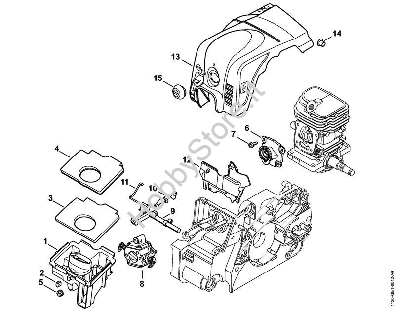 Ricambio Cappottatura Motoseghe a benzina (MS) MS 170 2-MIX STIHL Contiene anche i ricambi n. 14 e 15