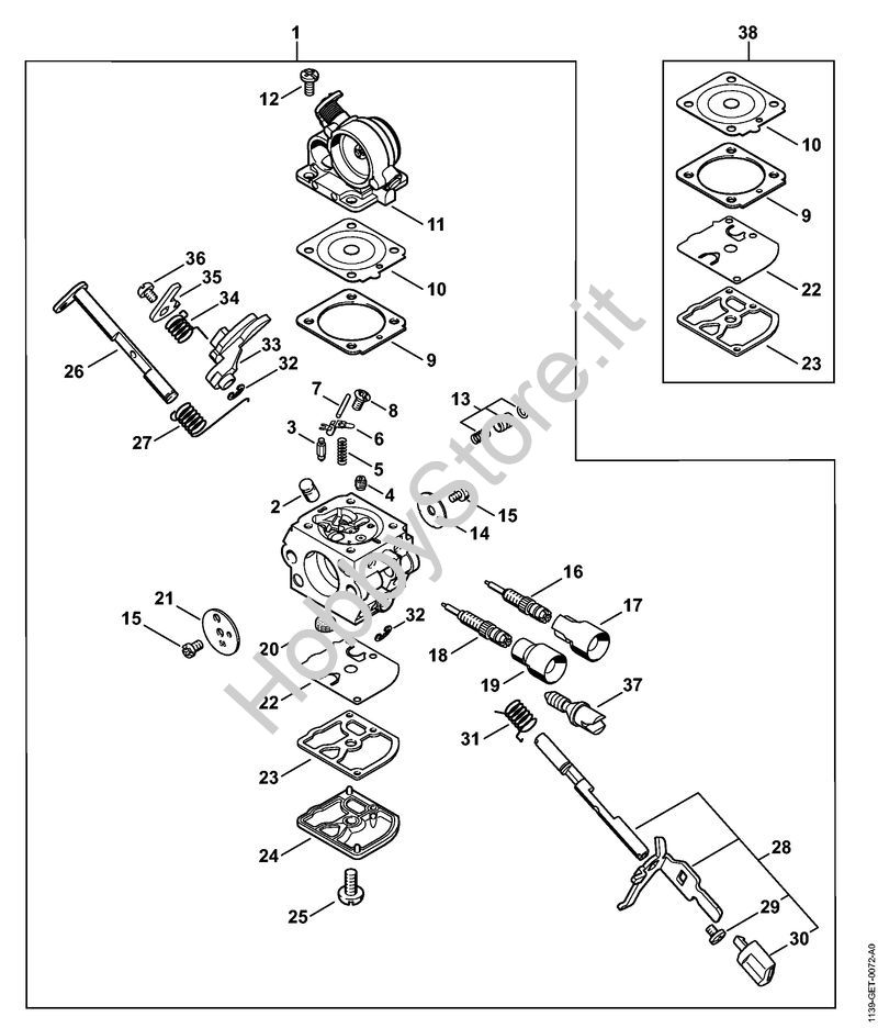 Ricambio Carburatore C1Q-S123D Motoseghe a benzina (MS) MS 171 STIHL Contiene anche i ricambi da n. 2 a 37