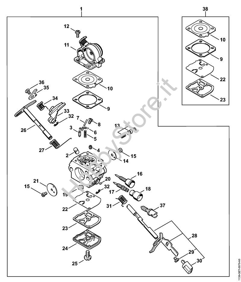 ATTENZIONE: Se nella lista sotto non compaiono i relativi ricambi riportati nell'esploso