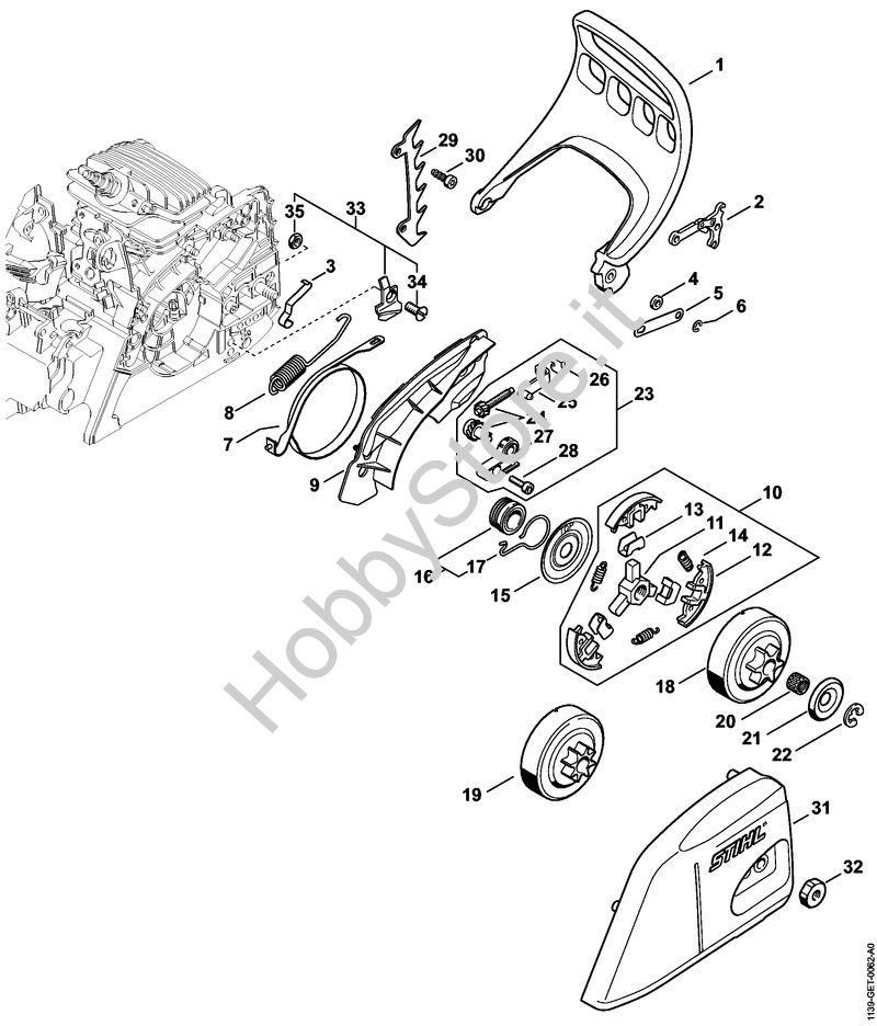 Ricambio Dispositivo ricupero catena Motoseghe a benzina (MS) MS 171 STIHL Contiene anche i ricambi n. 34 e 35
