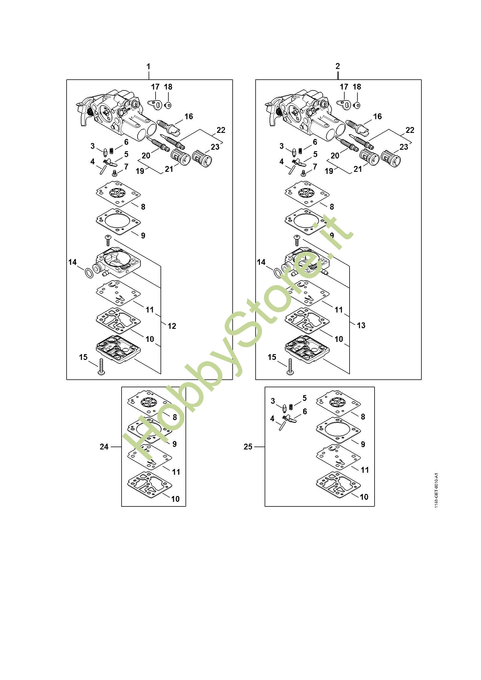 Ricambio Serie particolari carburatore Motoseghe a benzina (MS) MS 182 STIHL Contiene anche i ricambi nr. da 3 a 6, 8 a 11