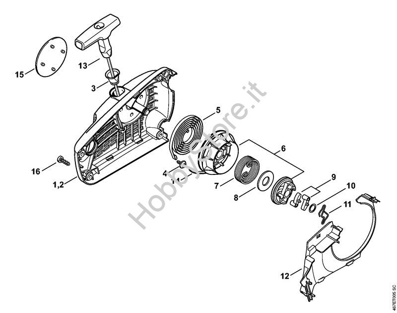 Ricambio Carenatura ventola con dispositivo di avviamento Motoseghe a benzina (MS) MS 193 TC-E STIHL Contiene anche i ricambi da n. 2 a 15