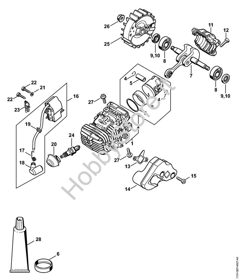 Cilindro con pistone, impianto di accensione Motoseghe a benzina (MS) MS 194 C-E della marca STIHL