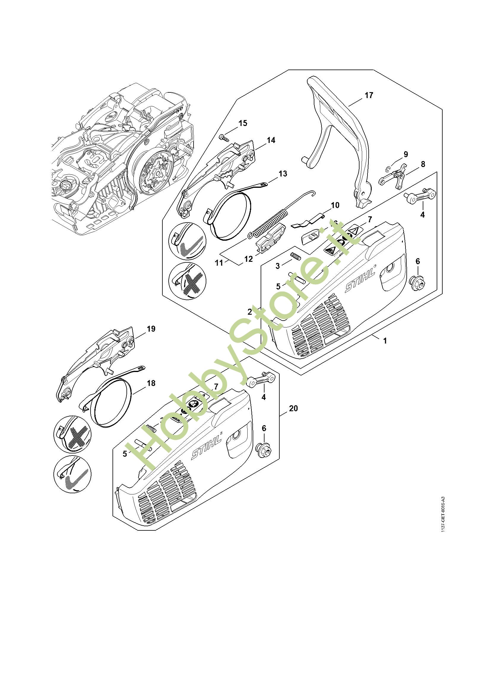 Ricambio Coperchio rocchetto catena Motoseghe a benzina (MS) MS 194 C-E STIHL Contiene anche i ricambi da n. 3 a 7