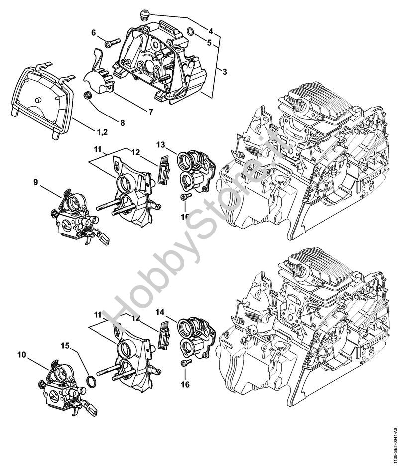 Ricambio Supporto carburatore Motoseghe a benzina (MS) MS 211 C-BE STIHL Contiene anche i ricambi n. 12