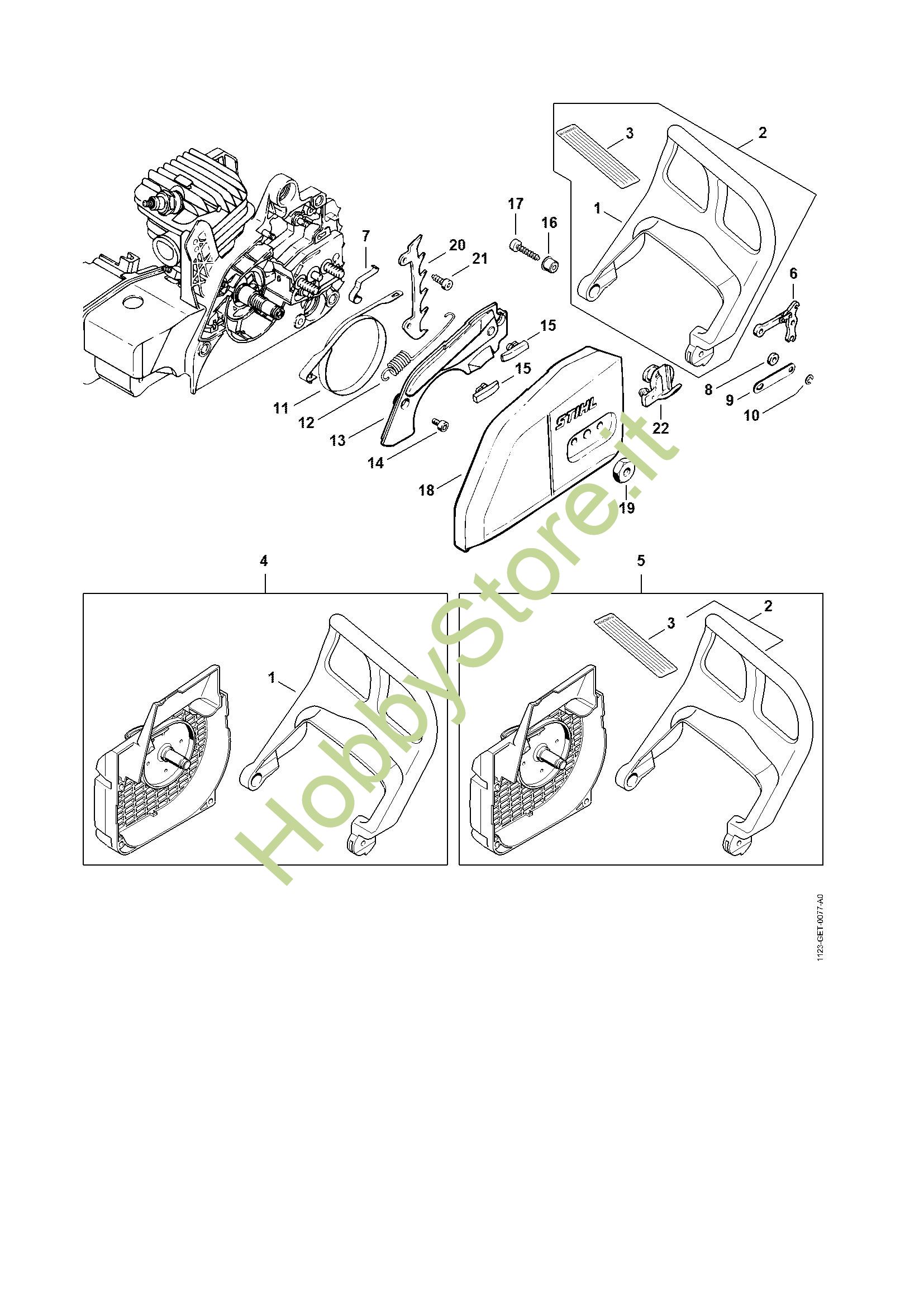 Protezione mano, freno catena Motoseghe a benzina (MS) MS 230 della marca STIHL