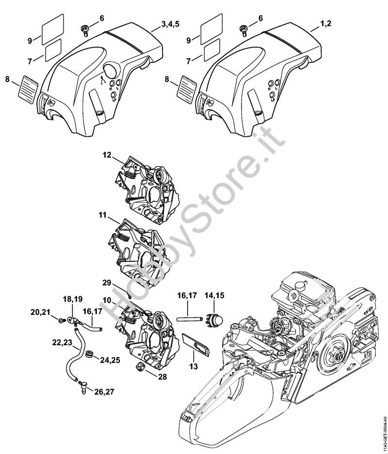 Ricambio Cappottatura Motoseghe a benzina (MS) MS 251 STIHL Contiene anche i ricambi n. 6