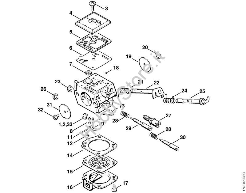 Ricambio Carburatore C3A-S31G Motoseghe a benzina (MS) MS 360 W STIHL Contiene anche i ricambi nr. 1 e da 3 a 32