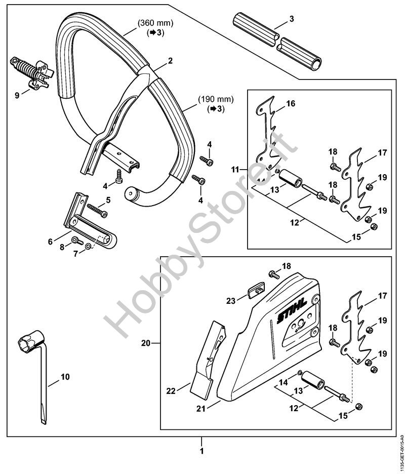 Ricambio Dispositivo ricupero catena Motoseghe a benzina (MS) MS 361-N STIHL Contiene anche i ricambi da n. 12 a 19
