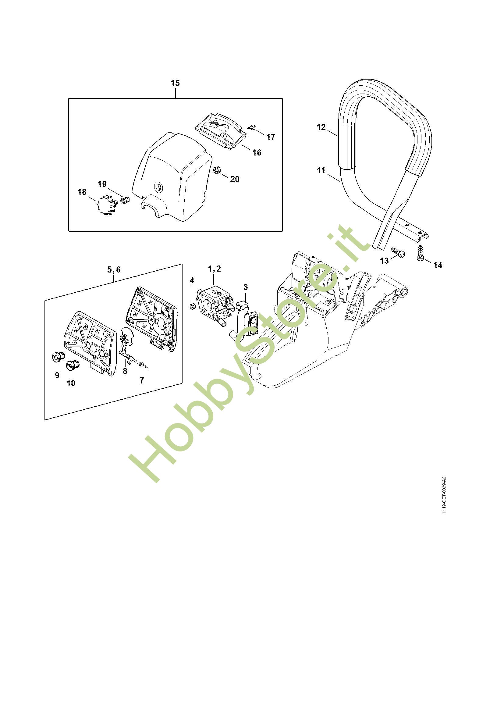 Filtro aria, Manico tubolare Motoseghe a benzina (MS) MS 381 della marca STIHL