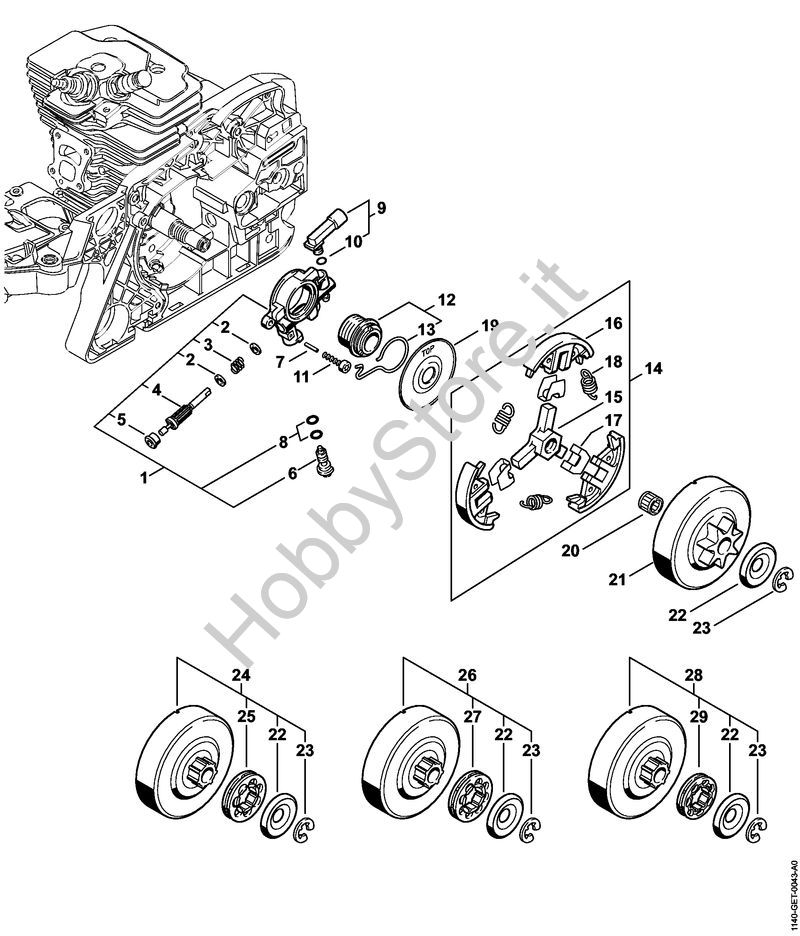 Ricambio Frizione Motoseghe a benzina (MS) MS 391 STIHL Contiene anche i ricambi da n. 15 a 18
