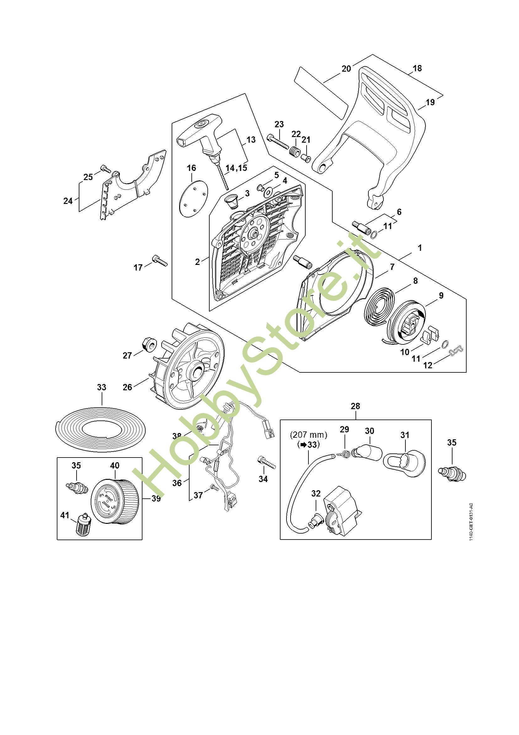 In caso di ordine di ricambi per il tuo prodotto Motoseghe a benzina (MS) MS 400 C-M della Stihl, per permettere al nostro staff di spedirti i ricambi corretti, inserire, nella pagina finale del carrello nel campo Note varie, anno della macchina e, se disponibile, il suo numero di matricola.