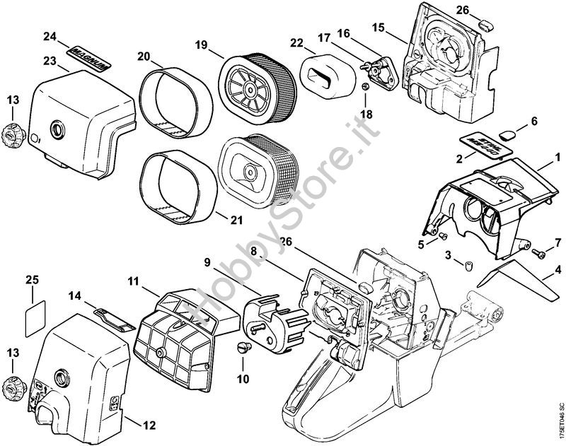 Ricambio Cappottatura Motoseghe a benzina (MS) MS 440-N STIHL Contiene anche i ricambi da n. 3 a 6