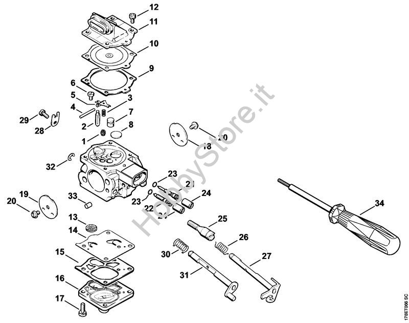 Ricambio Carburatore WJ-69C Motoseghe a benzina (MS) MS 660-W STIHL Contiene anche i ricambi da n. 1 a 33