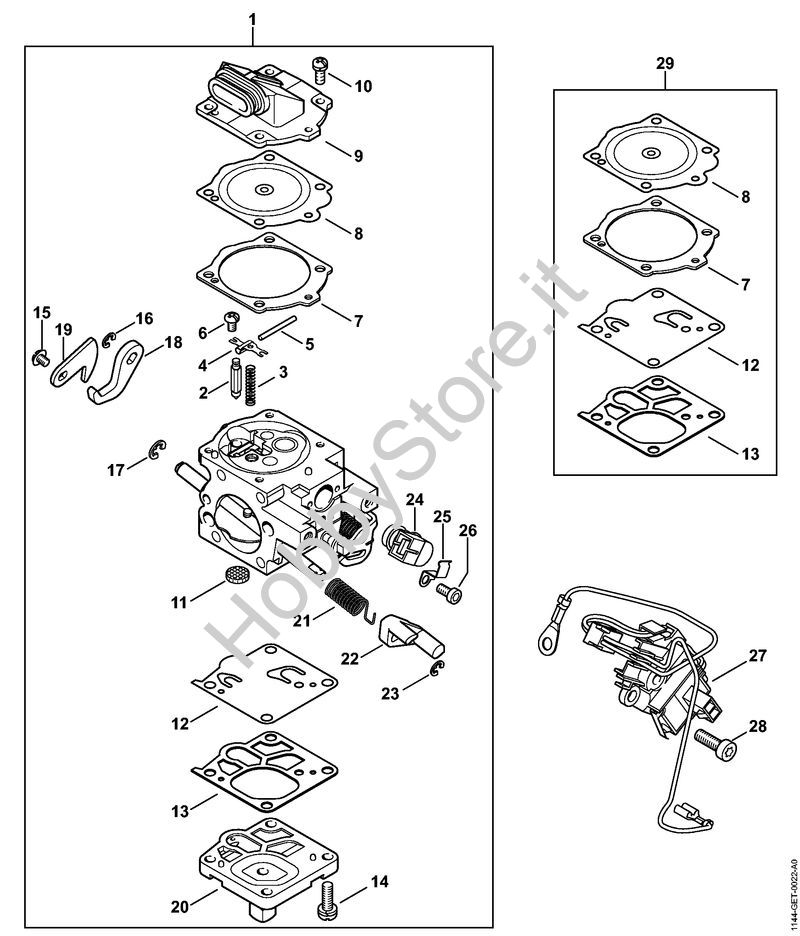 Ricambio Carburatore WJ-140A Motoseghe a benzina (MS) MS 661 C-M STIHL Contiene anche i ricambi da n. 2 a 26