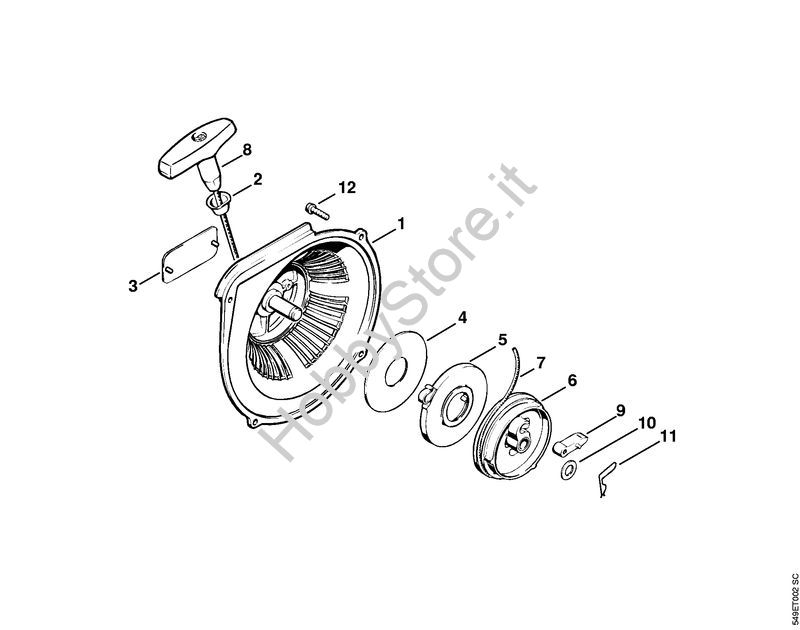 Ricambio Coperchio ventola con dispositivo di avviamento Motoseghe a benzina (MS) MS 720 STIHL Contiene anche i ricambi da n. 1 a 11