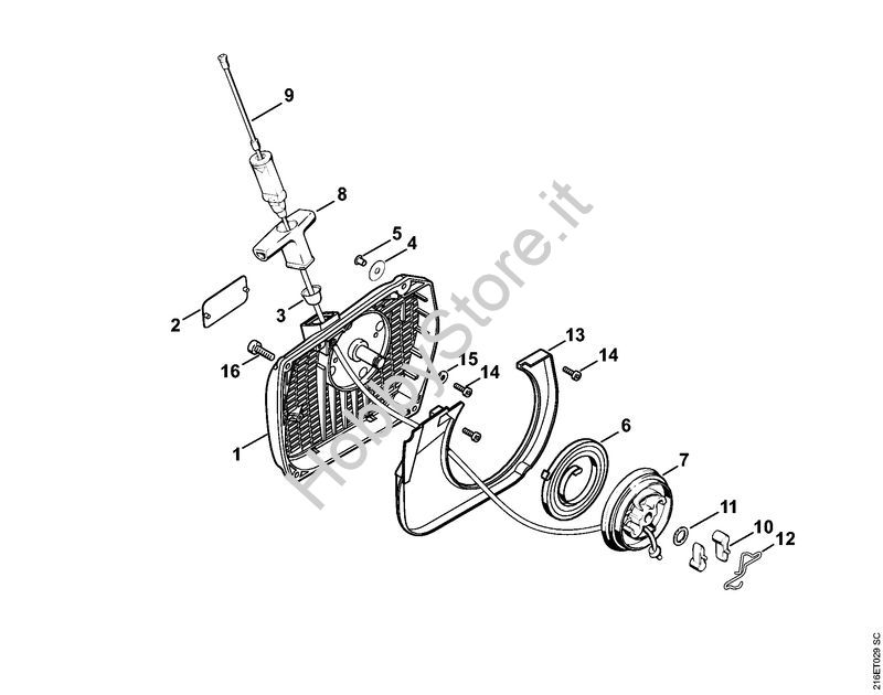 Ricambio Carenatura ventola con dispositivo di avviamento Motoseghe a benzina (MS) MS 880 STIHL Contiene anche i ricambi da n. 1 a 15