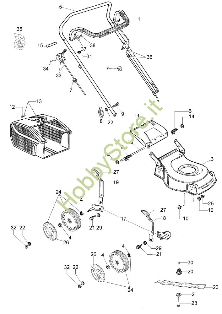 Ricambio Cesto completo Esploso completo LR 44 PK COMFORT (K600 - AUTOCHOCKE) Rasaerba della marca Efco Richiede pezzi:1