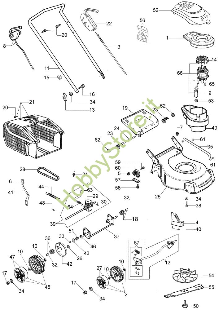 Ricambio Ralla Esploso completo (Da Gennaio 2012) G 48 TE Rasaerba elettrico della marca Oleo-Mac Richiede pezzi:1
