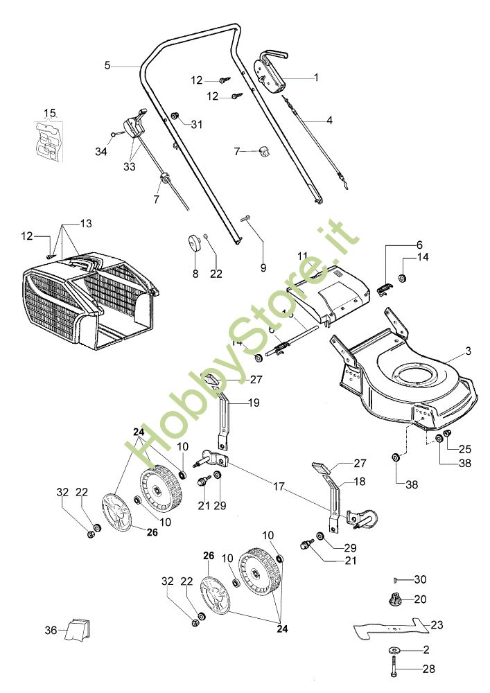Ricambio Leva Esploso completo ESSENTIAL (Da gennaio 2012) LR 48 PK (K500) Rasaerba della marca Efco Richiede pezzi:2