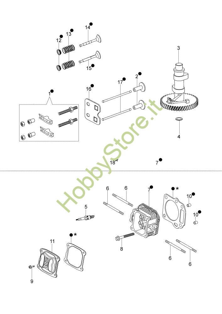 Ricambio Albero camme Testa e valvole AR 48 TK (K50) Rasaerba della marca Efco Richiede pezzi:1