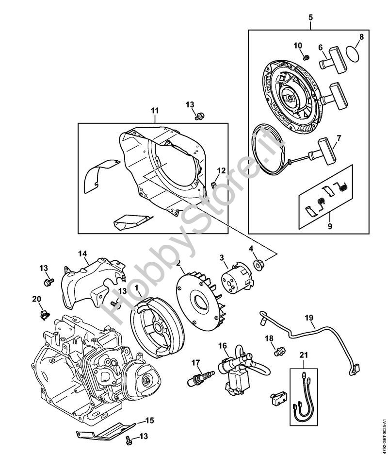 Impianto di accesione, ventola, Dispositivo di avviamento Idropulitrice a benzina (RB) RB 800 della marca STIHL