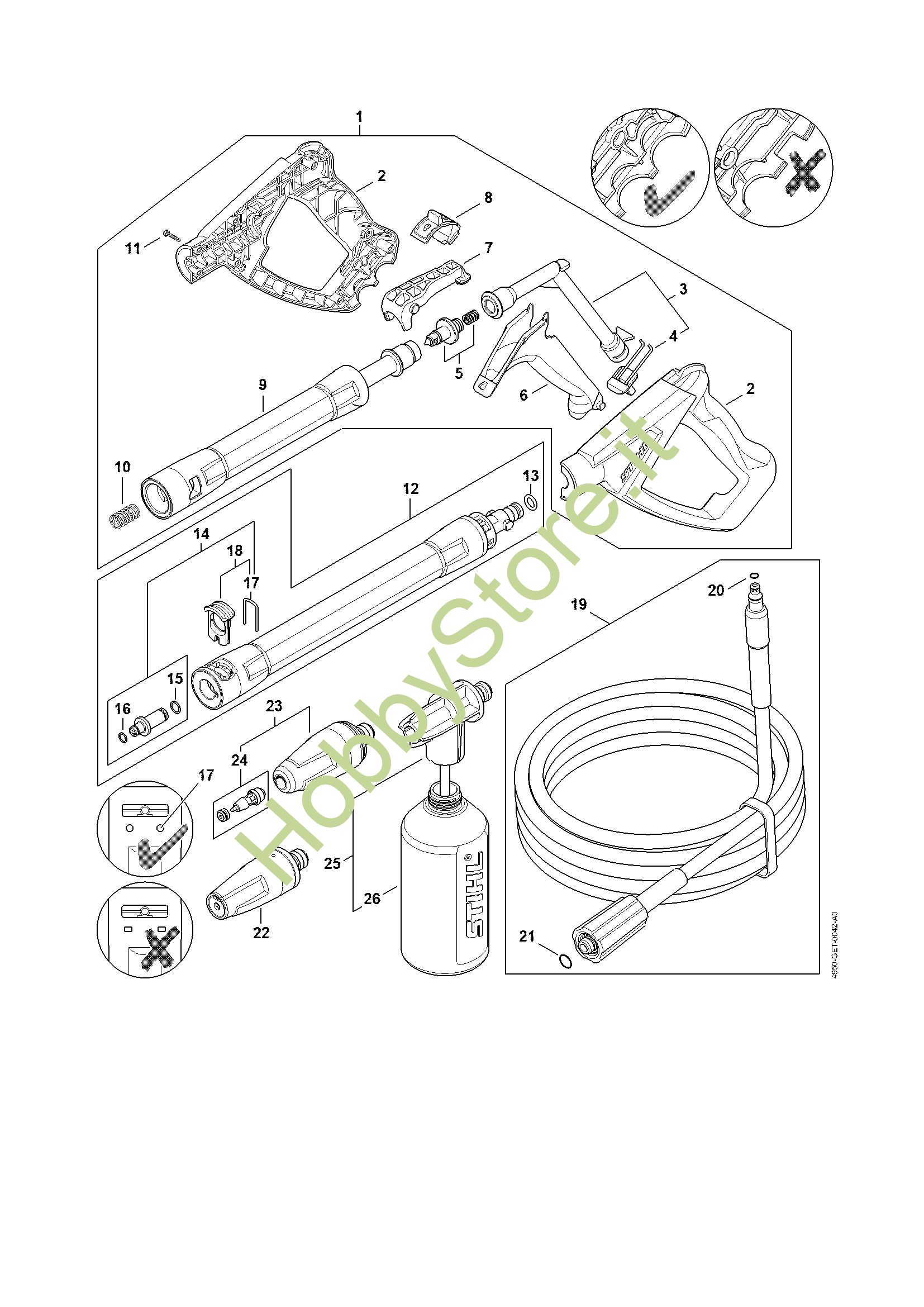 Ricambio Gruppo spruzzatore Idropulitrice elettrica (RE) RE 100 STIHL Contiene anche i ricambi n. 26