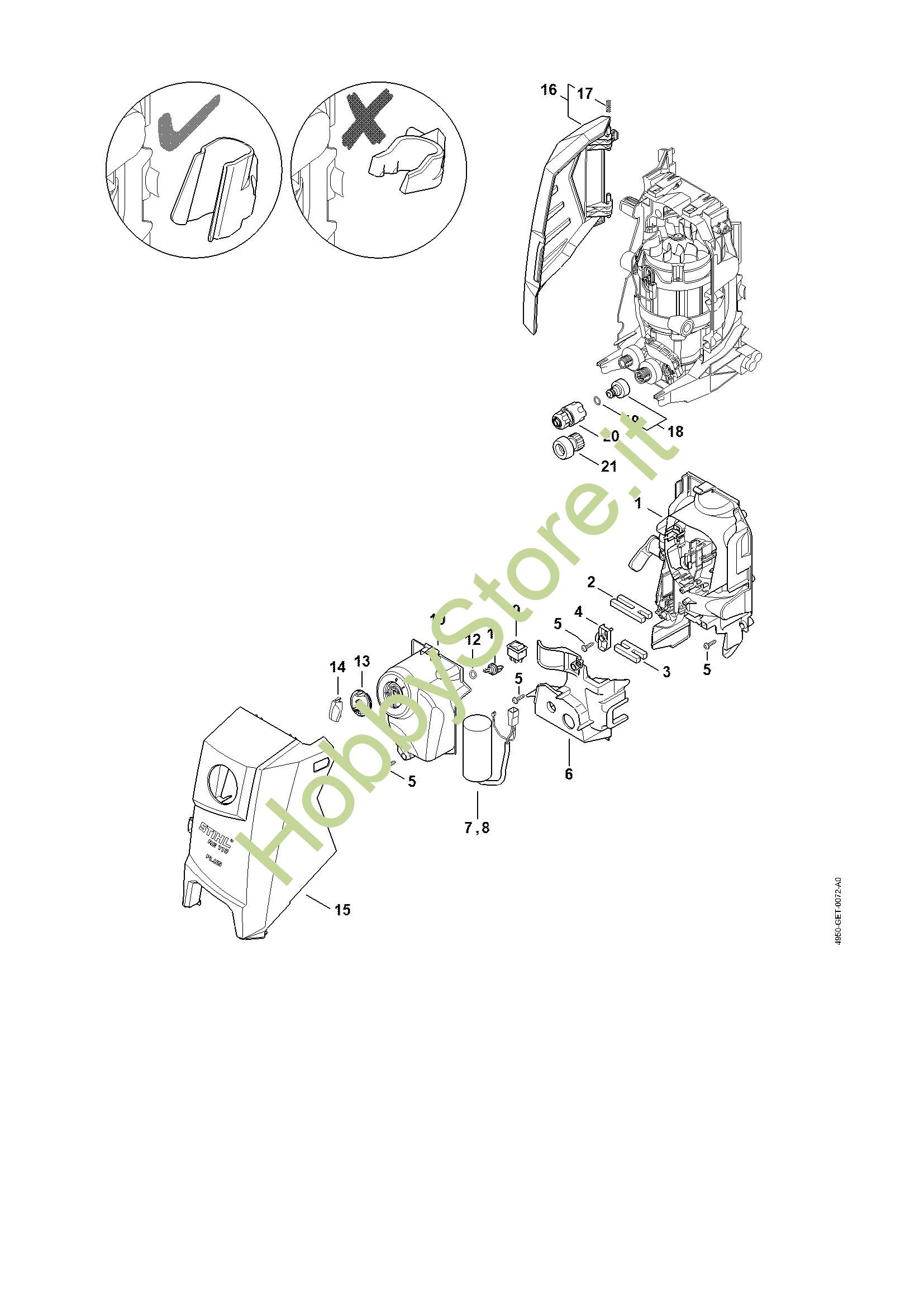 Condotto aria, Cappottatura, Scatola interruttore Idropulitrice elettrica (RE) RE 110 della marca STIHL