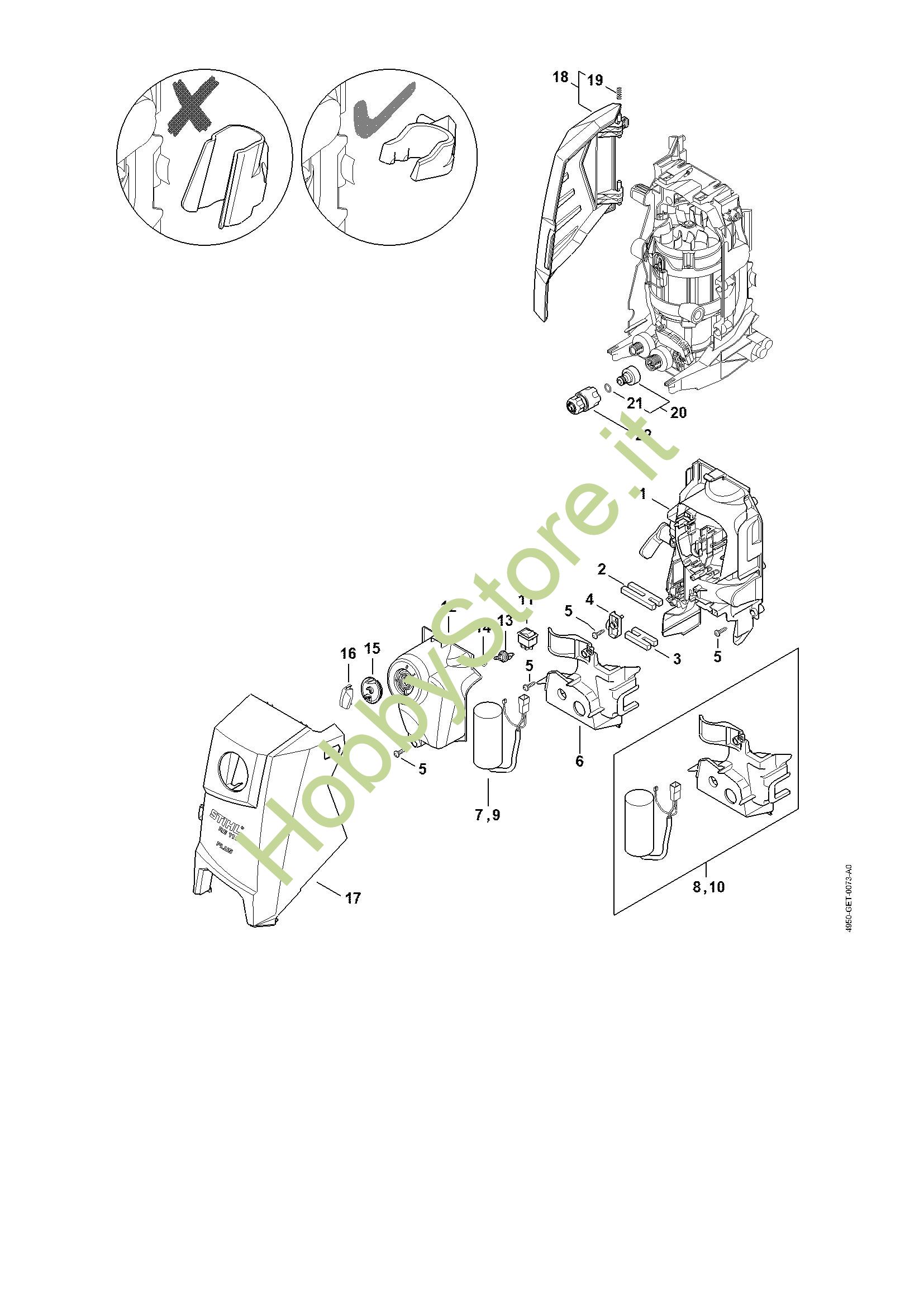 Condotto aria, Cappottatura, Scatola interruttore Idropulitrice elettrica (RE) RE 110 della marca STIHL