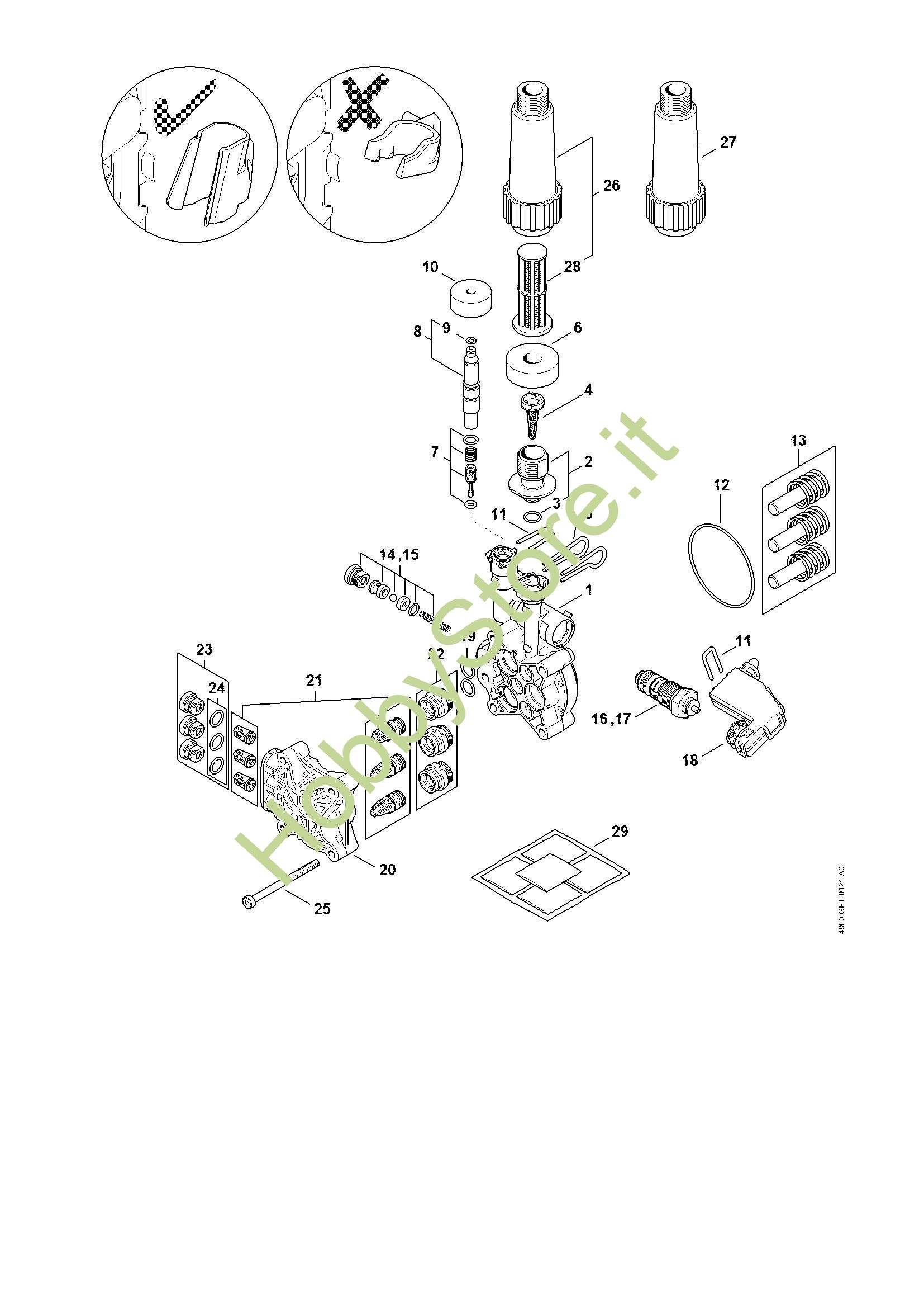 ATTENZIONE: Se nella lista sotto non compaiono i relativi ricambi riportati nell'esploso