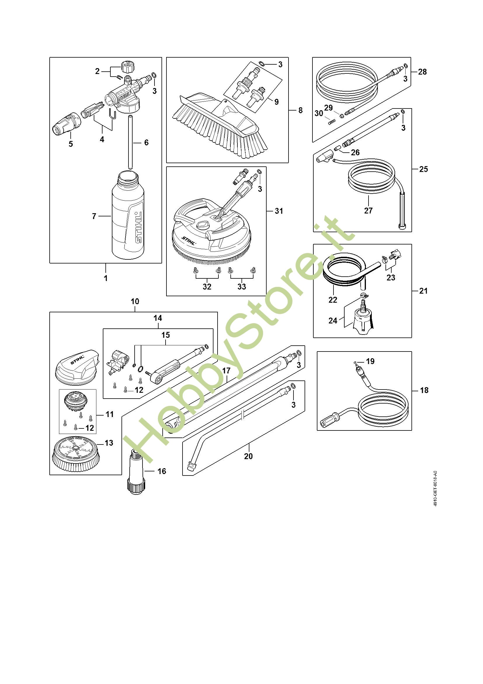 Ricambio Appliciazioni pulitrice per superfici RA Idropulitrice elettrica (RE) RE 120 PLUS STIHL Contiene anche i ricambi nr. 3, 32, 33