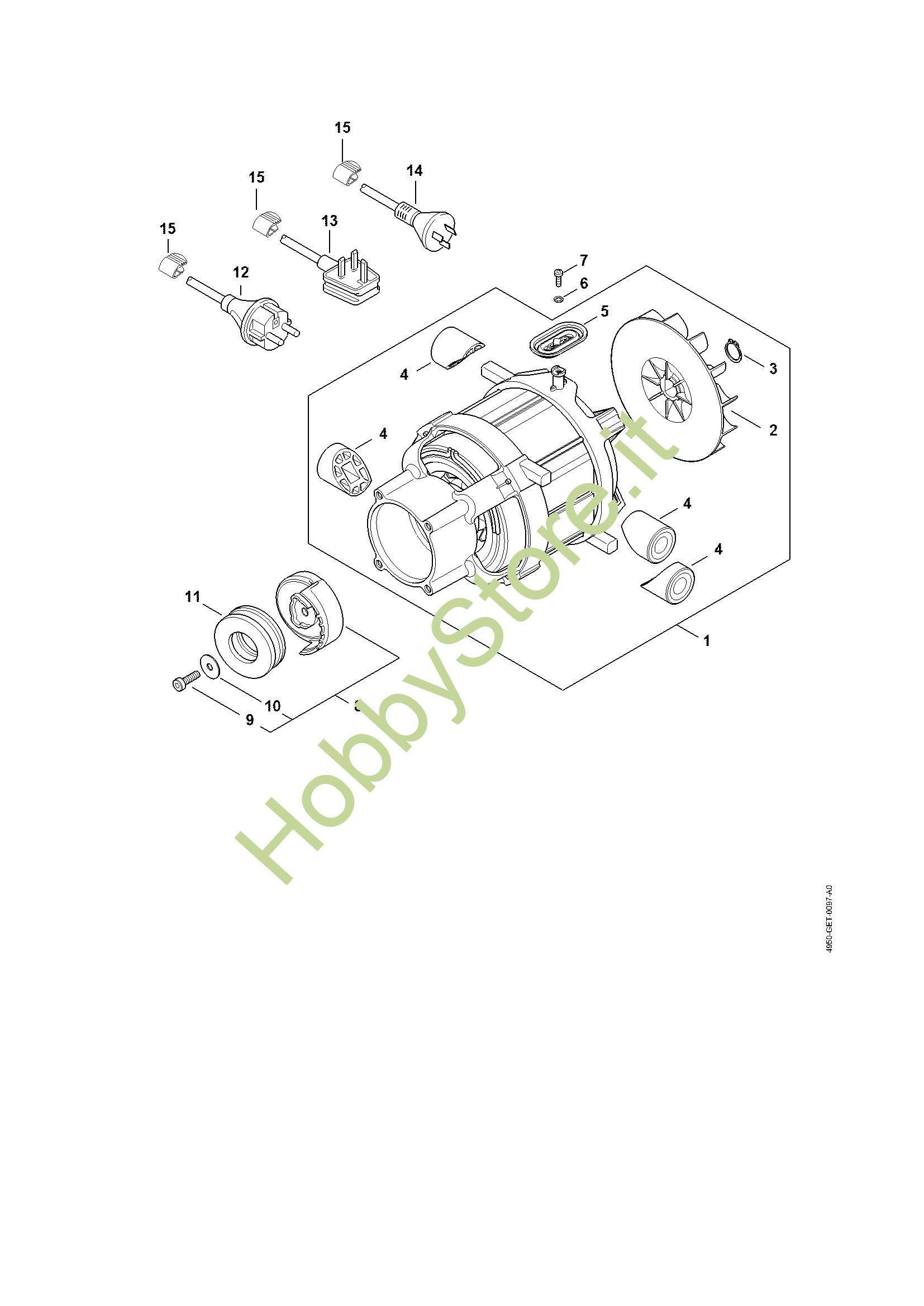 Ricambio Elettromotore 220-240V/50 Hz, 2,1/2,3 kW Idropulitrice elettrica (RE) RE 120 PLUS STIHL Contiene anche i ricambi da n. 2 a 5
