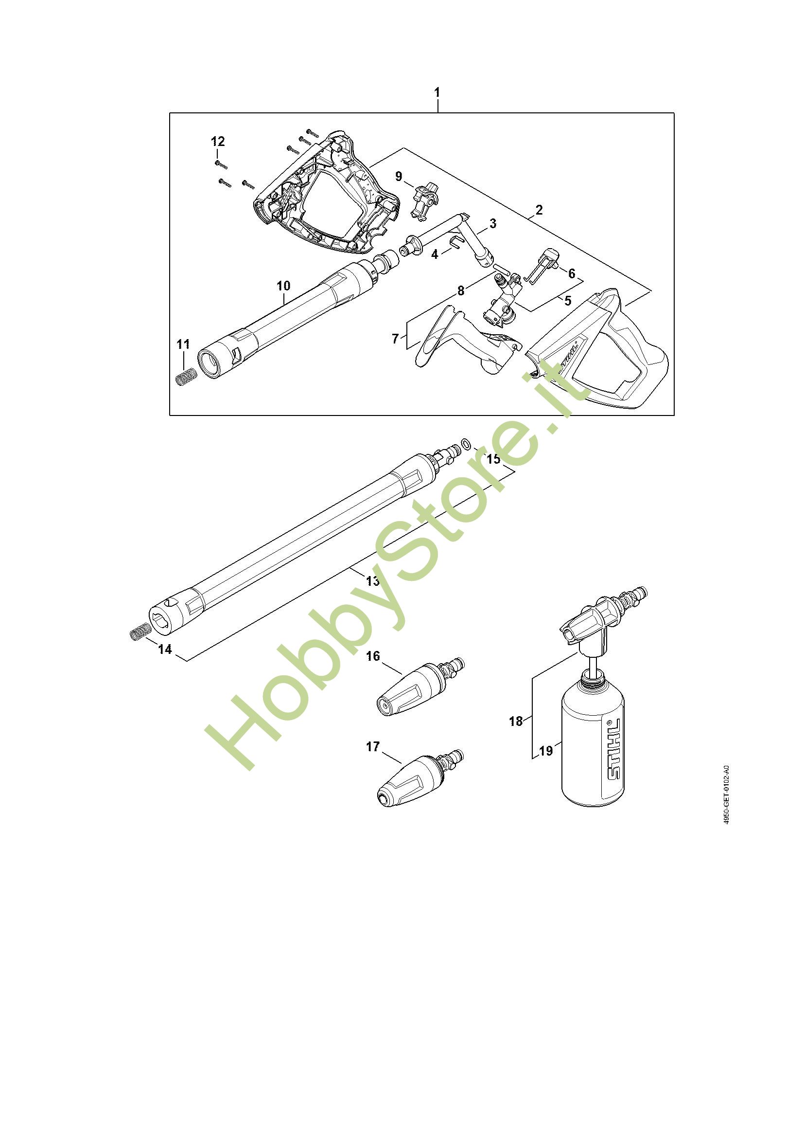 Ricambio Gruppo spruzzatore Idropulitrice elettrica (RE) RE 120 PLUS STIHL Contiene anche i ricambi n. 19
