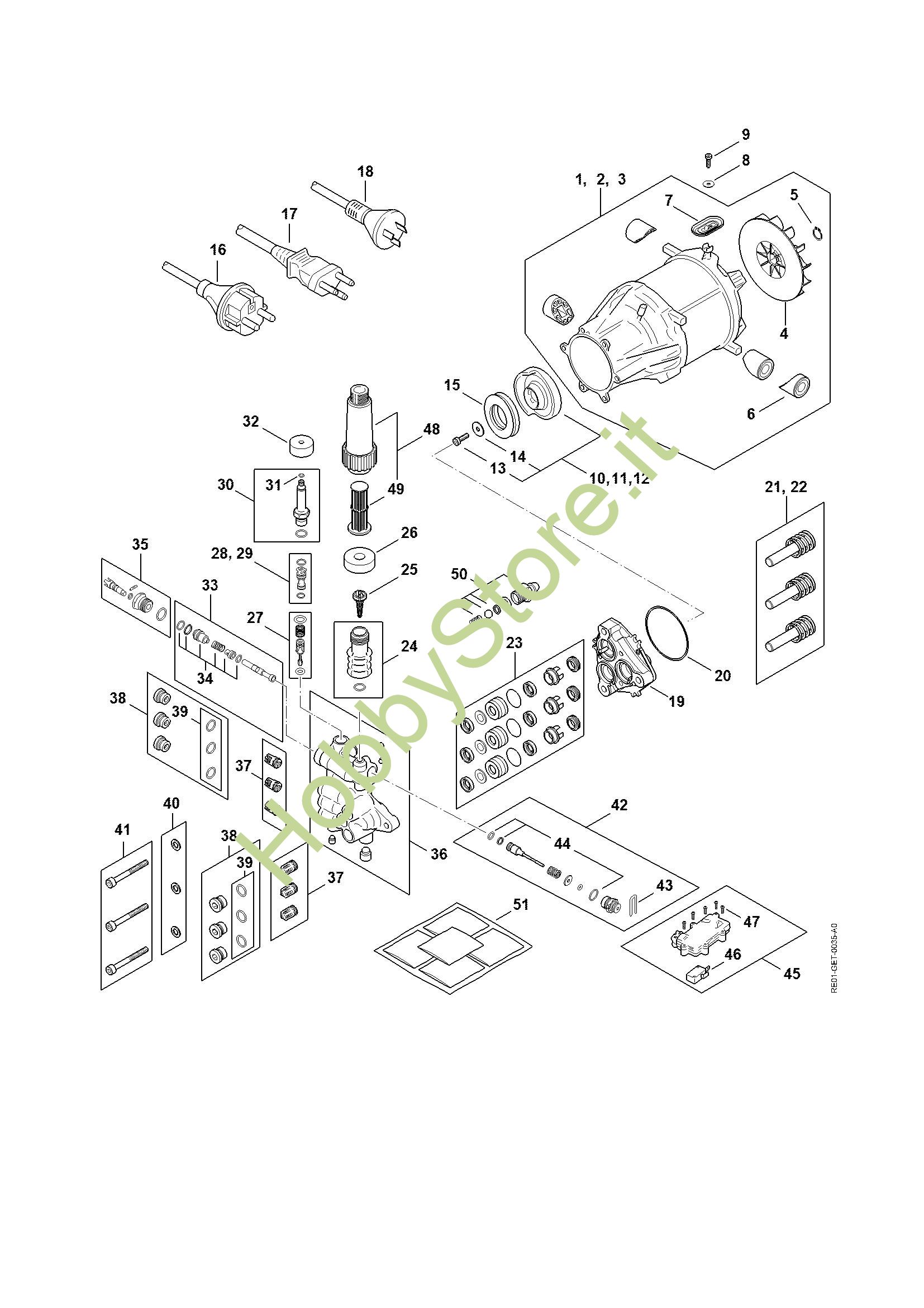 Elettromotore, Cavo di collegamento, Blocco valvola, Pompa RE 150 Idropulitrice elettrica (RE) RE 150 della marca STIHL