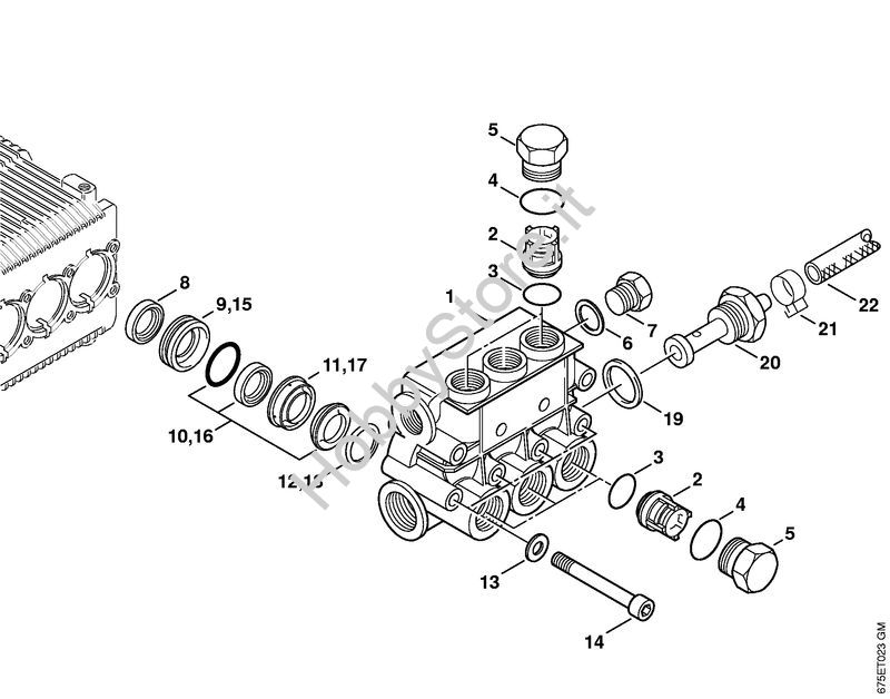 Ricambio Blocco valvole Idropulitrice elettrica (RE) RE 581 PLUS STIHL Contiene anche i ricambi da n. 1 a 14