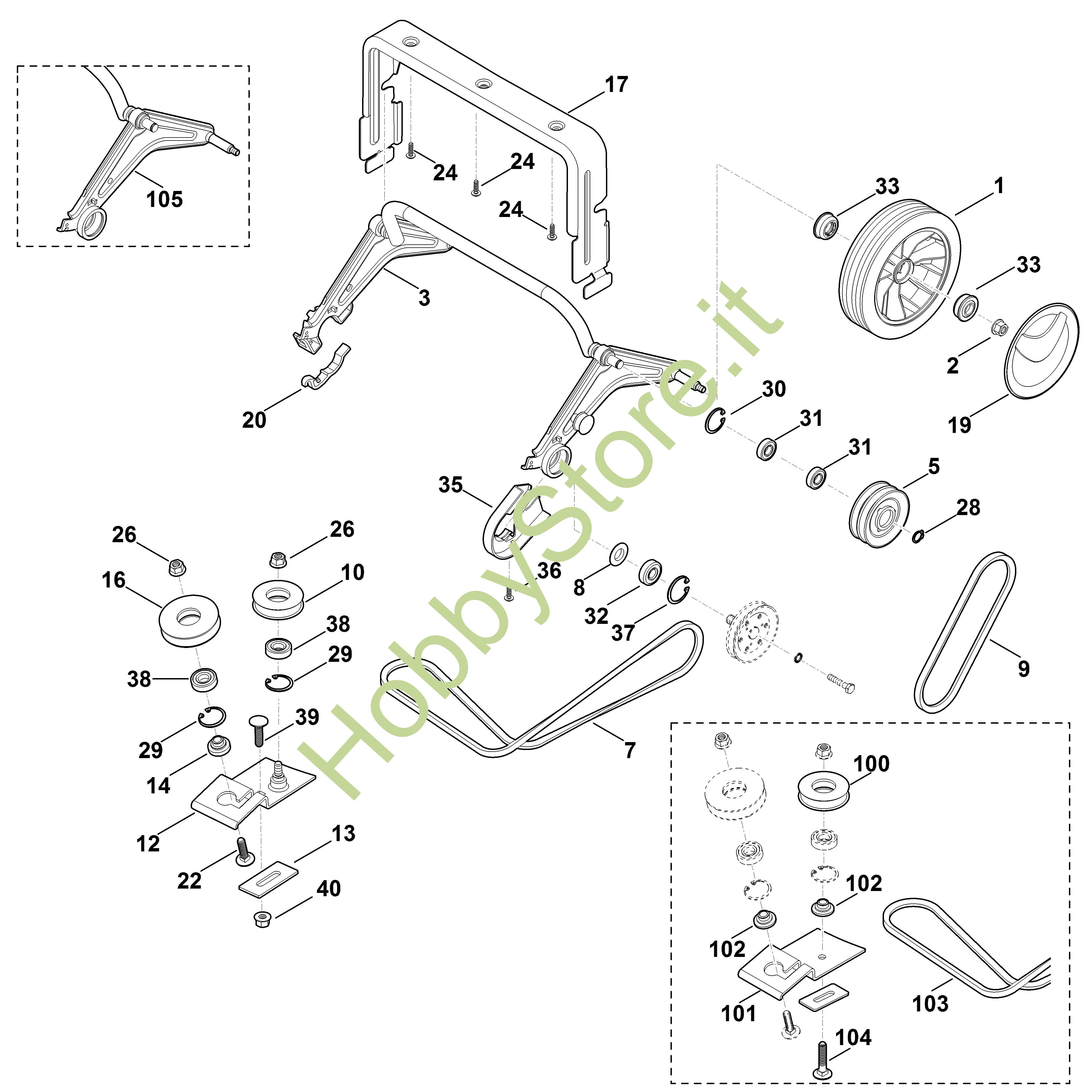 ricambio originale Kit puleggia di rinvio LB LB 540.1 Viking Contiene anche i ricambi nr. 7,10,12,14,39,40