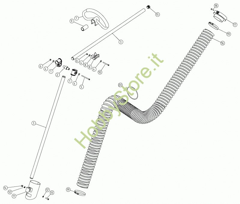 Ricambio 3 Tubo x manubrio V1200 con tappi Tubi impugnatura e aspirazione D.75 V1200 prodotto dal 29/10/2014 al 03/09/2015 V1200S della marca CIFARELLI Contiene anche i ricambi 3, 15