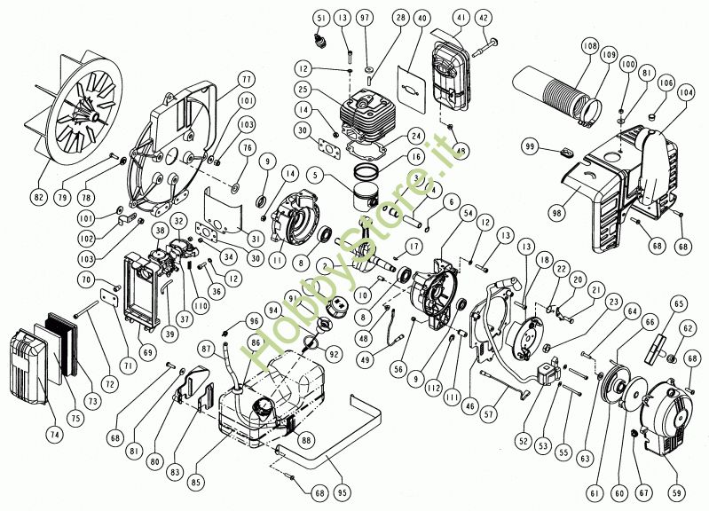 Ricambio 999 Serbatoio miscela M88BL cpl Motore V77 24/08/99 prodotto dal 11/05/00 V77S della marca CIFARELLI Contiene anche i ricambi dal 5 al92, 96