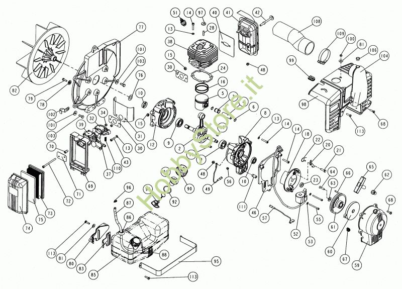 Ricambio 98 Prot. motore V77 per silenziatore 97 Motore V77 x convogl. in plastica prodotto dal 24/11/2006 al 17/03/2009 V77S della marca CIFARELLI