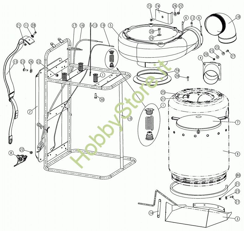 Ricambio 5 Convogliat. V77 condutt.cpl con prolunga Telaio, serbatoio, schienale prodotto dal 01/05/2007 V77S della marca CIFARELLI Contiene anche i ricambi 5, 6, 12, 22, 26, 74, 75, 79. Per