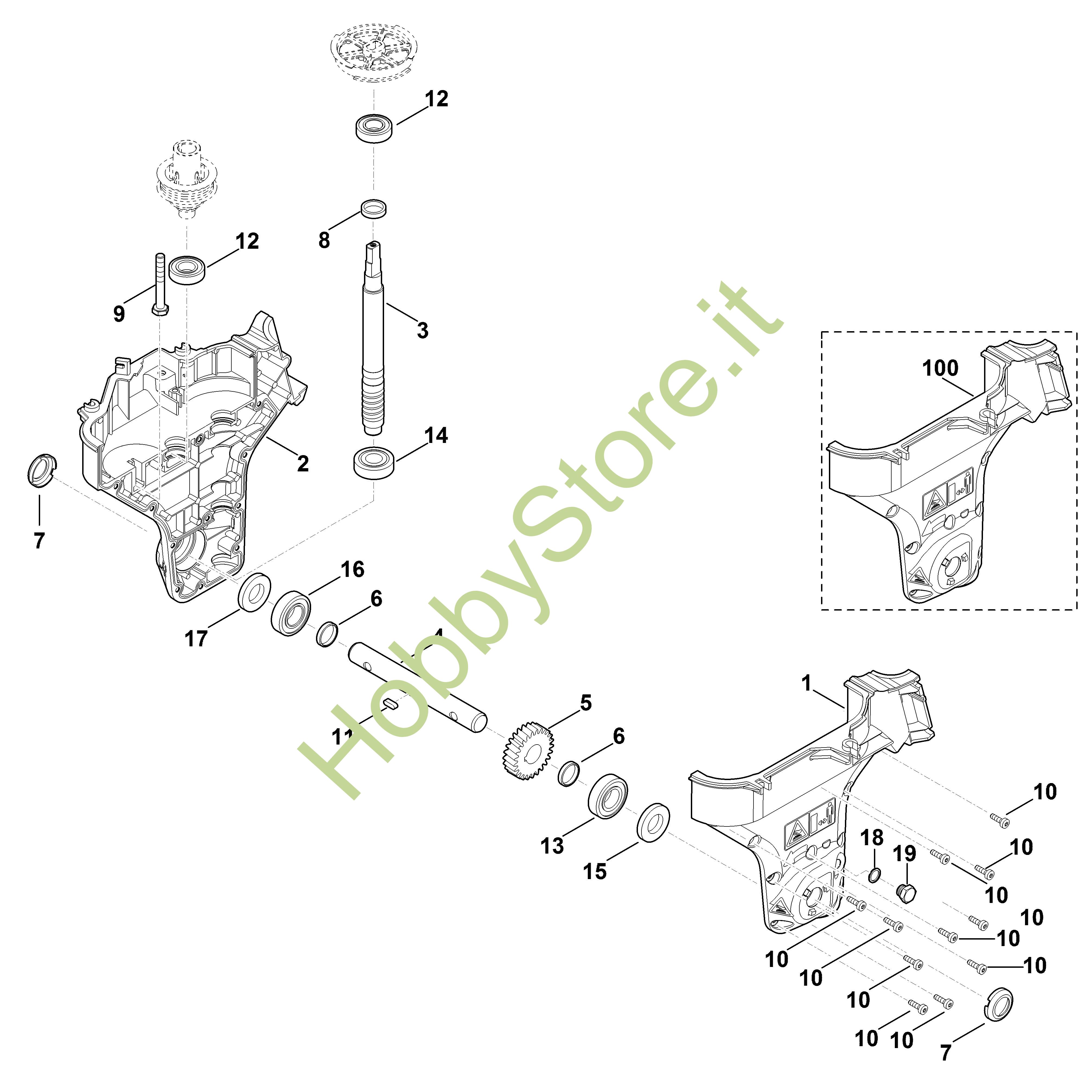 ricambio originale Scatola cambio destra, compl. HB HB 445.2 R Viking Contiene anche i ricambi n. 16 e 17