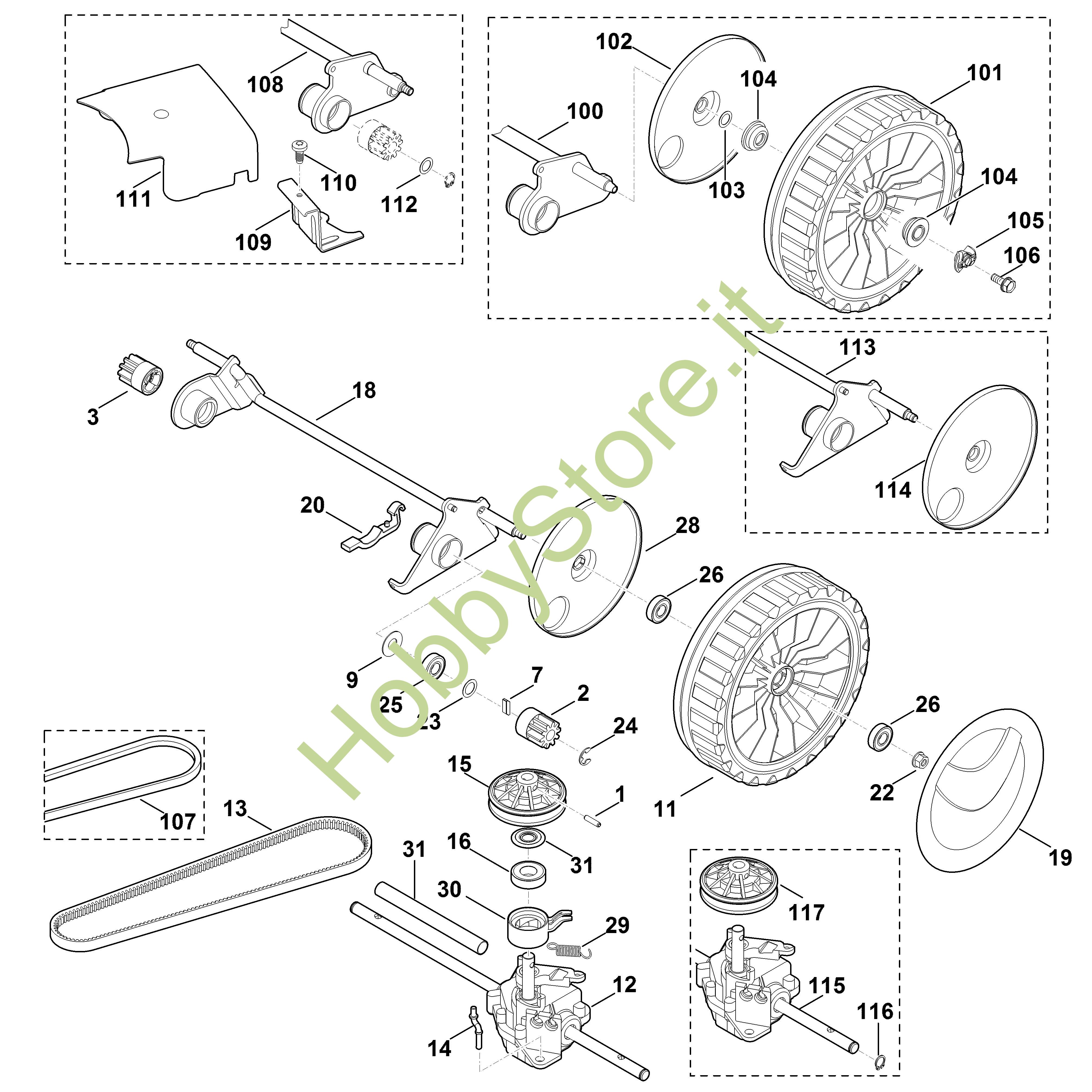 117 Puleggia per cinghia trapezoidale compl.