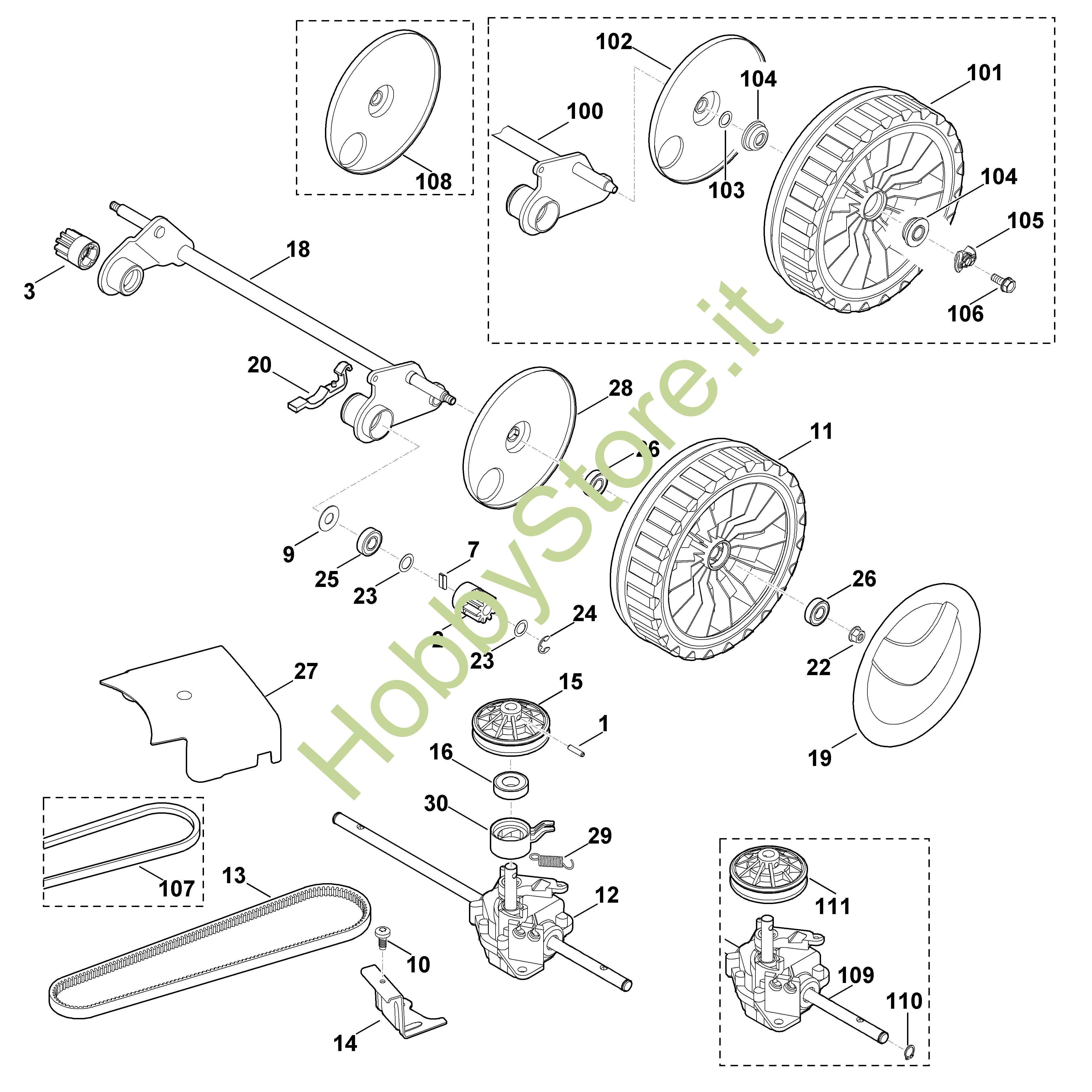 111 Puleggia per cinghia trapezoidale compl.