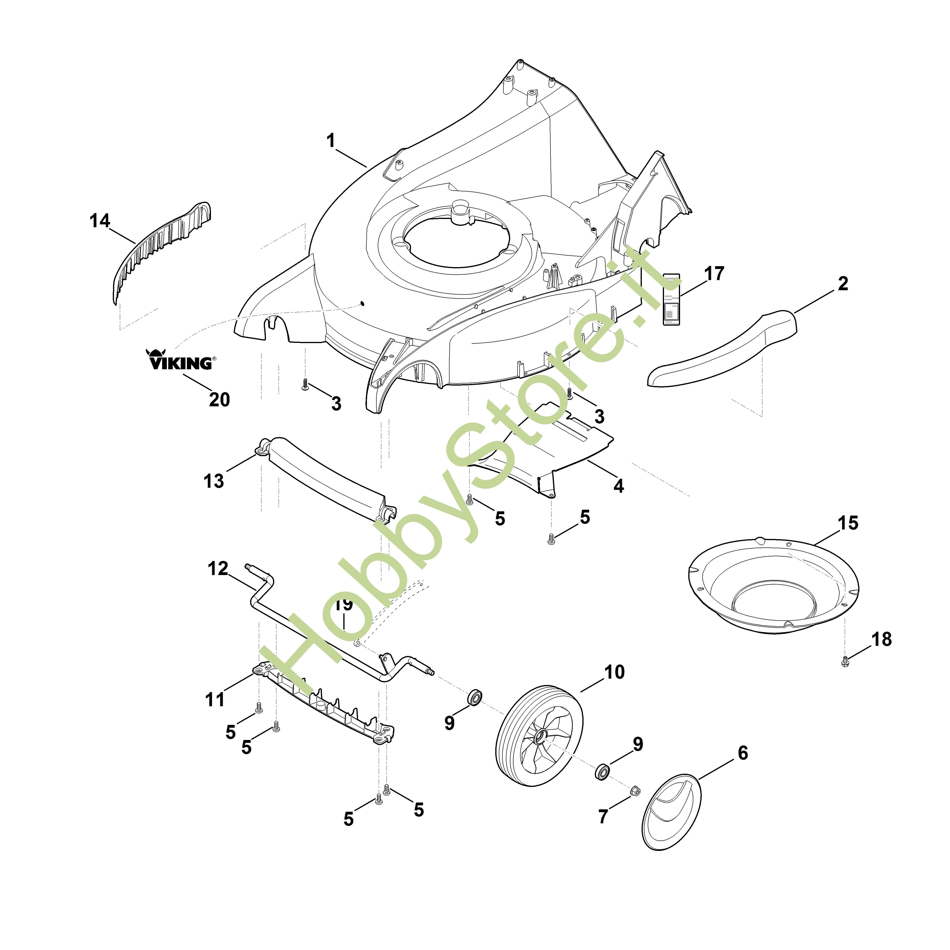 ricambio originale Impugnatura da trasporto compl. MB MB 655.1 RS Viking Contiene anche i ricambi n. 11 e 13