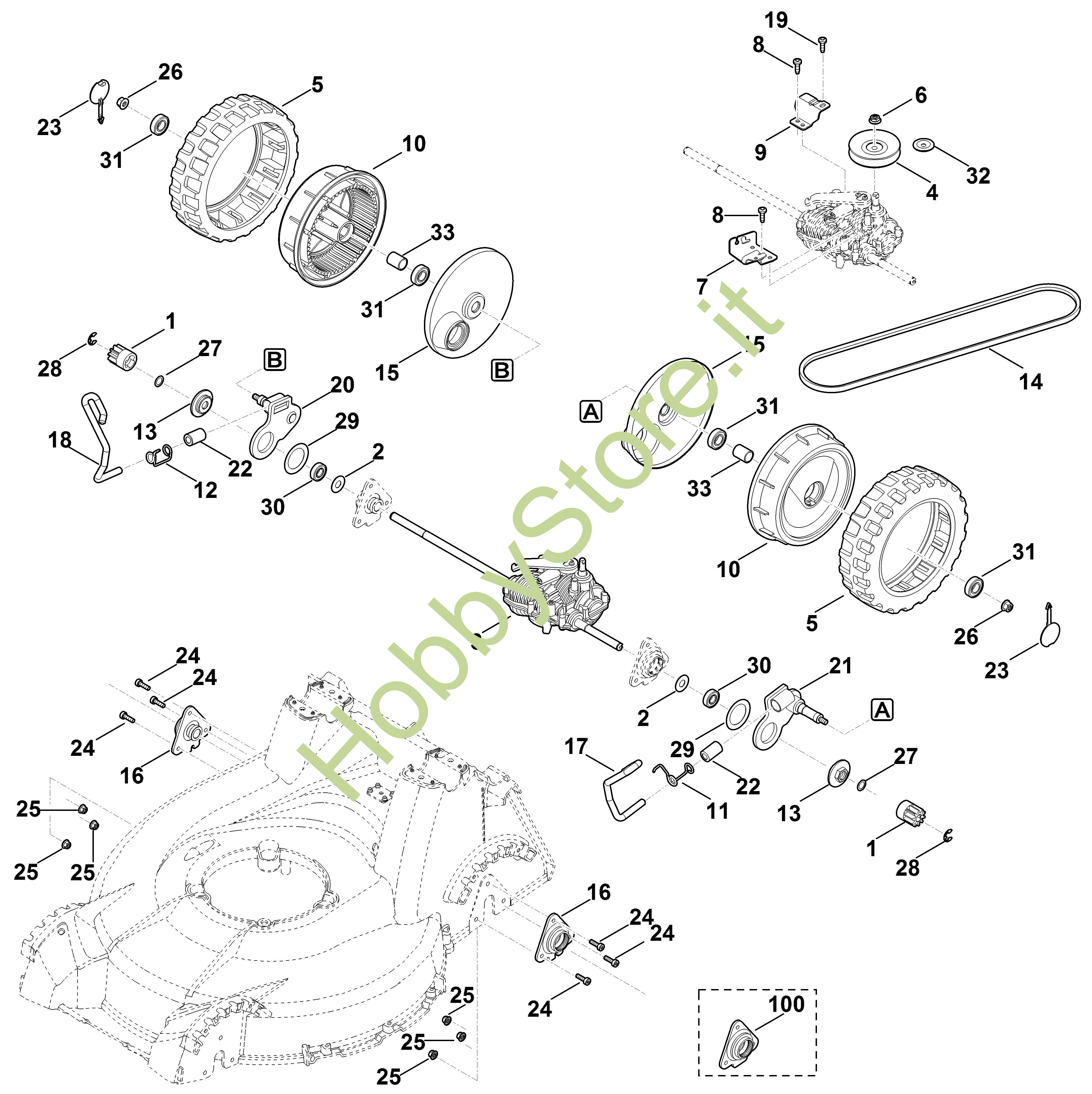 ricambio originale Set puleggia cinghia trapezoidale MB MB 756.0 GS Viking Contiene anche i ricambi n. 6 e 32